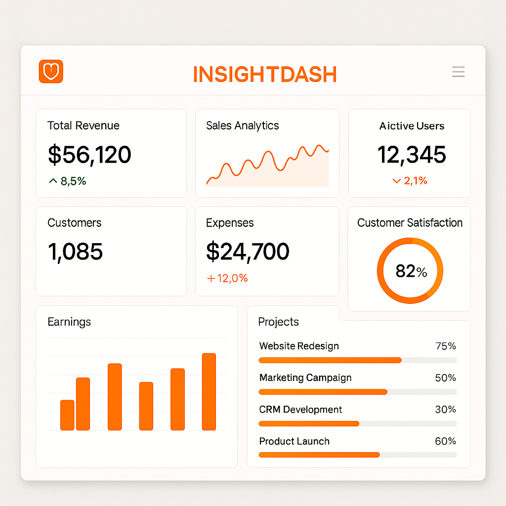 InsightDash is an advanced data intelligence and analytics platform designed to centralize reporting, KPIs, and business insights in one dynamic, real-time dashboard. Built for growing teams and data-driven organizations, InsightDash empowers leaders to visualize performance, track progress across departments, and make faster, more informed decisions. Its flexible widget-based layout allows users to fully customize their workspace, bringing together financial metrics, project statuses, marketing KPIs, customer data, and more—all from one interface.